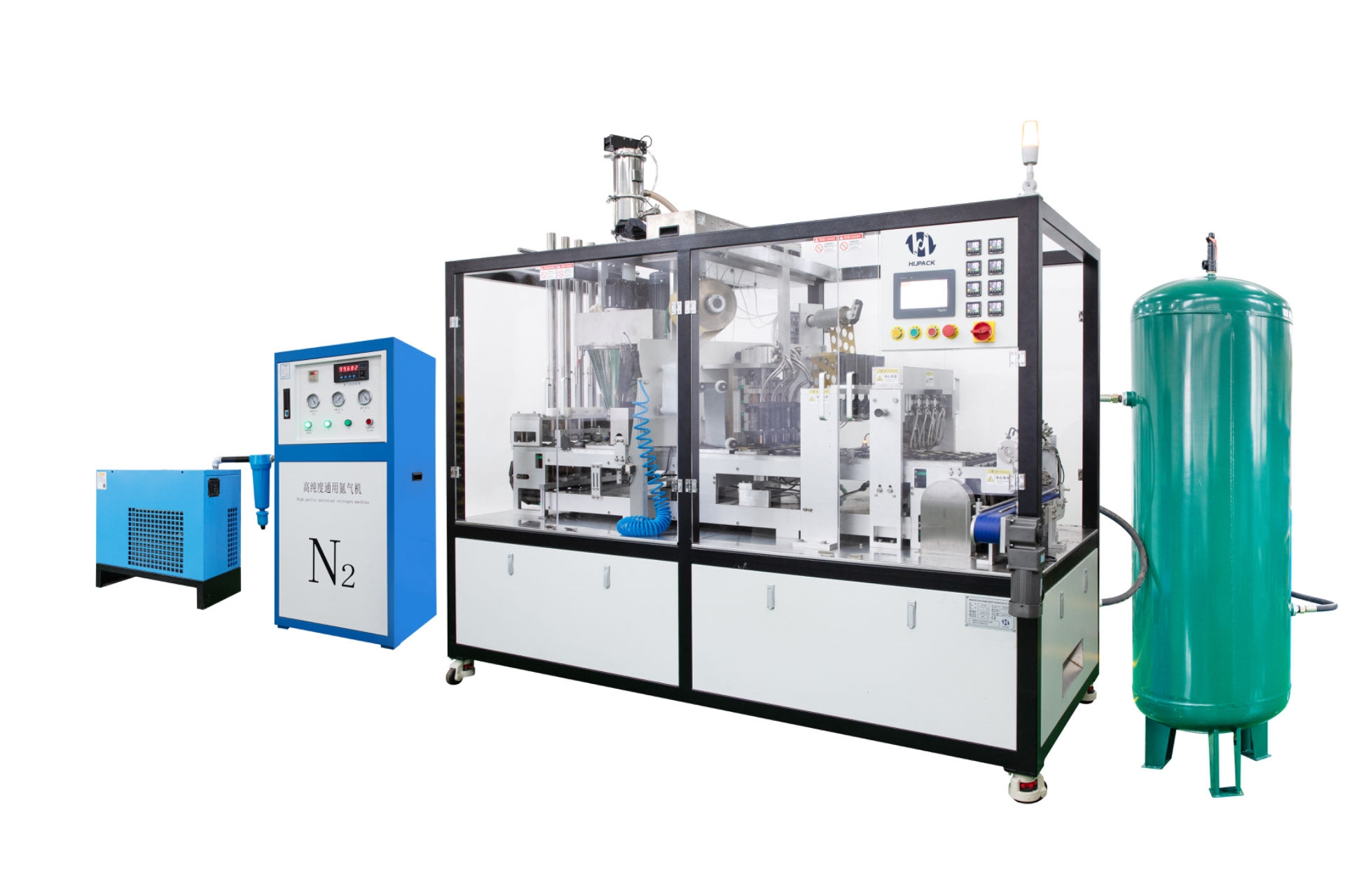 Cette machine est un nouveau modèle récemment développé par notre société. C'est une machine rotative qui occupe une petite surface, est rapide et stable et peut remplir 7,200 capsules par heure. Il peut remplir une variété de types de tasses, tant que le moule de la machine est changé. Cela peut être fait en 30 minutes. Remplissage en spirale à commande servo, la précision de remplissage peut atteindre±0.2g. Il a une fonction de remplissage d'azote, de sorte que l'oxygène résiduel dans le produit peut atteindre 5%, ce qui peut prolonger la durée de conservation du café. L'ensemble du système de machine est principalement basé sur Schneider et développé avec la technologie de l'Internet des objets. Vous pouvez utiliser un ordinateur/téléphone portable pour surveiller ou faire fonctionner la machine en ligne.
